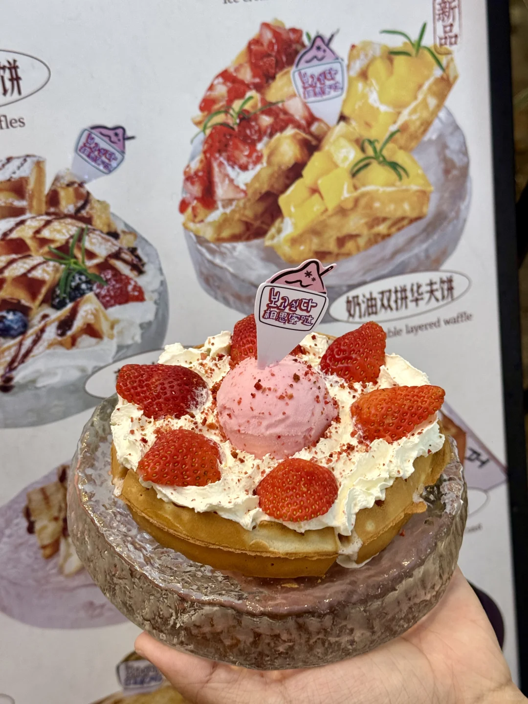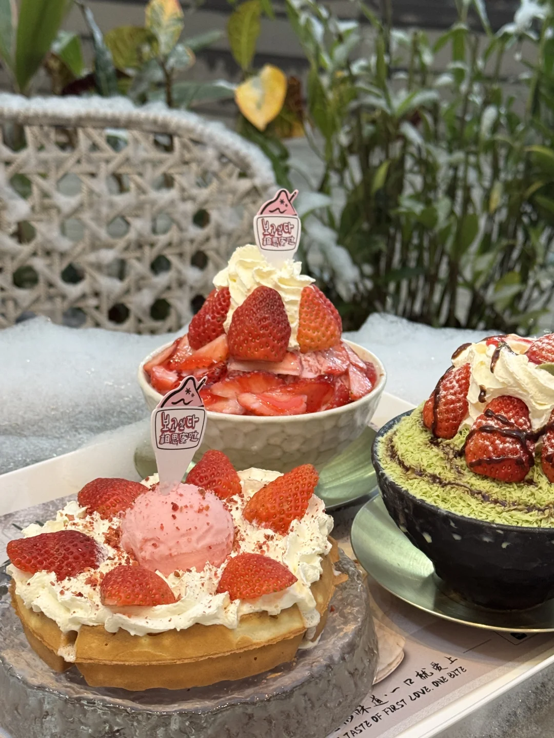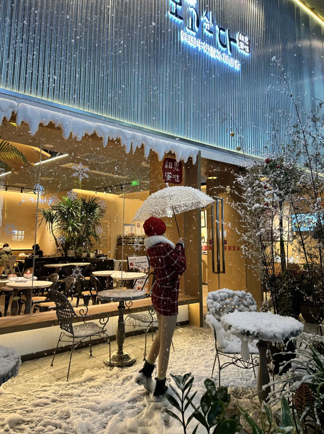不去沈阳,在重庆就能吃到超好吃的草莓雪冰啦 这可是沈阳人记忆中的味道啊 店里打造的浓浓圣诞装饰和雪景 好有氛围,再用CCD拍照好美呀📸