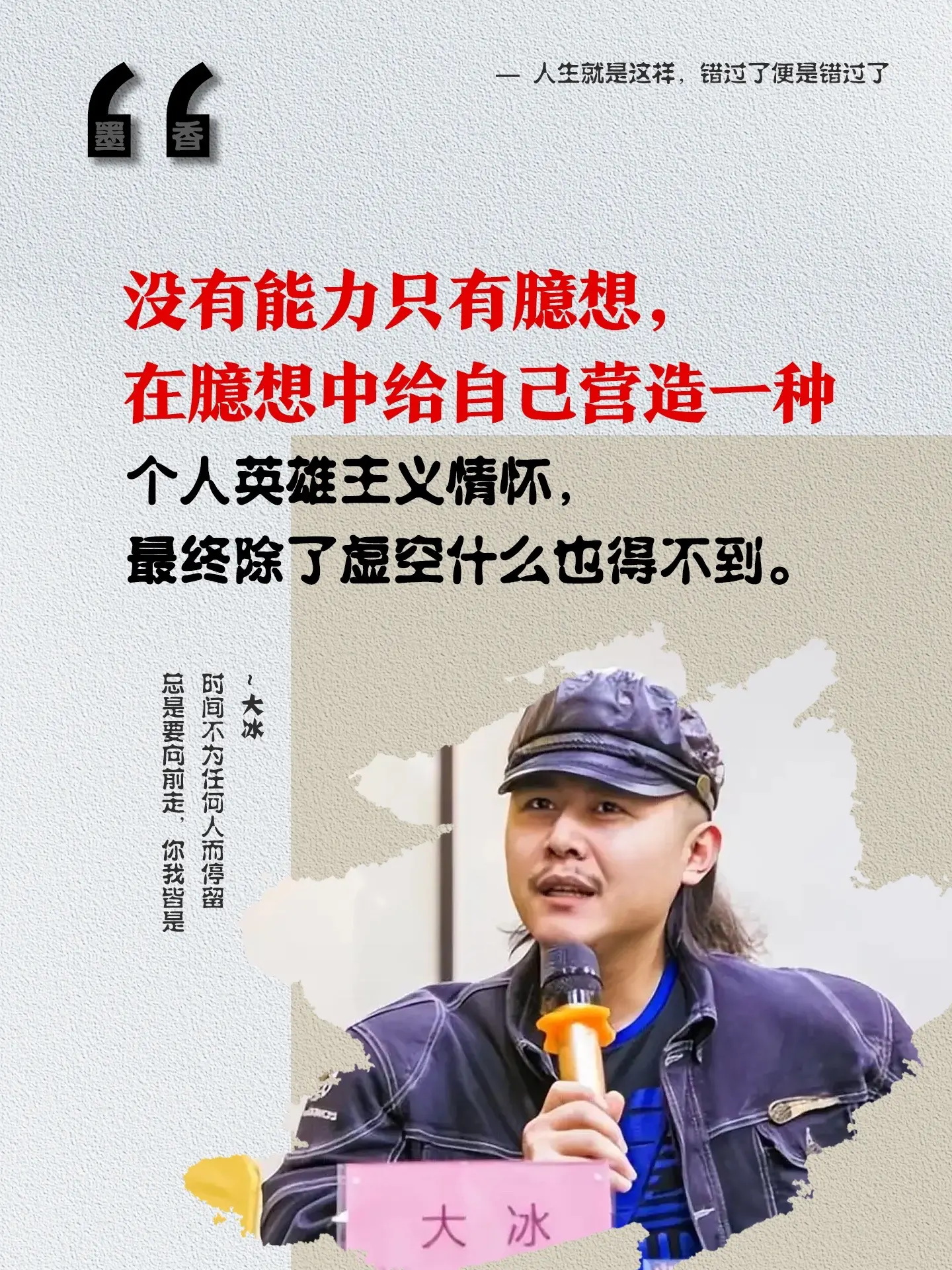 来自大冰老师的经典语录,总有一句温暖你的心!少年,你为何好胜又懒惰?你...