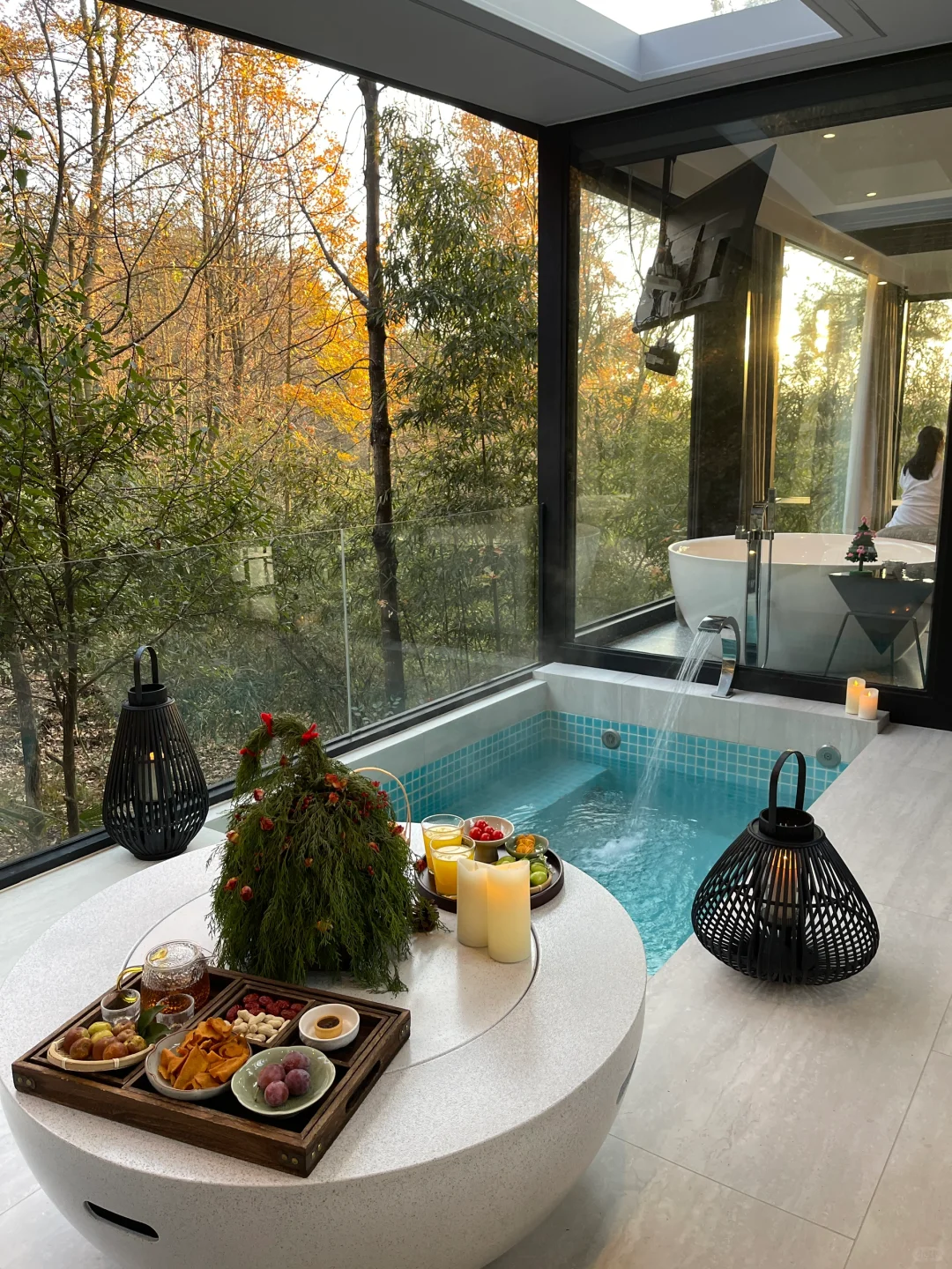 👉私汤池都在房间区域内❄️雨雪天氛围感更棒,都是独栋树屋私密感不用担心❤️