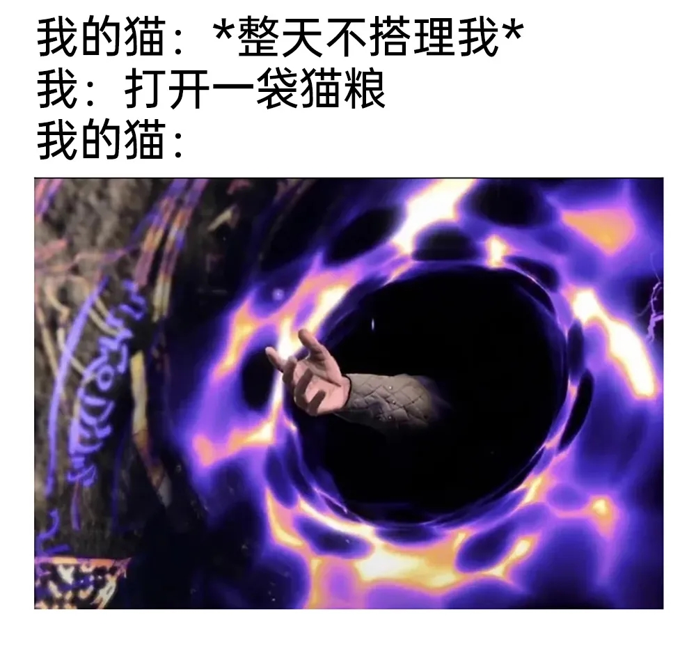 我的猫:整天不搭理我 我:打开一袋猫粮