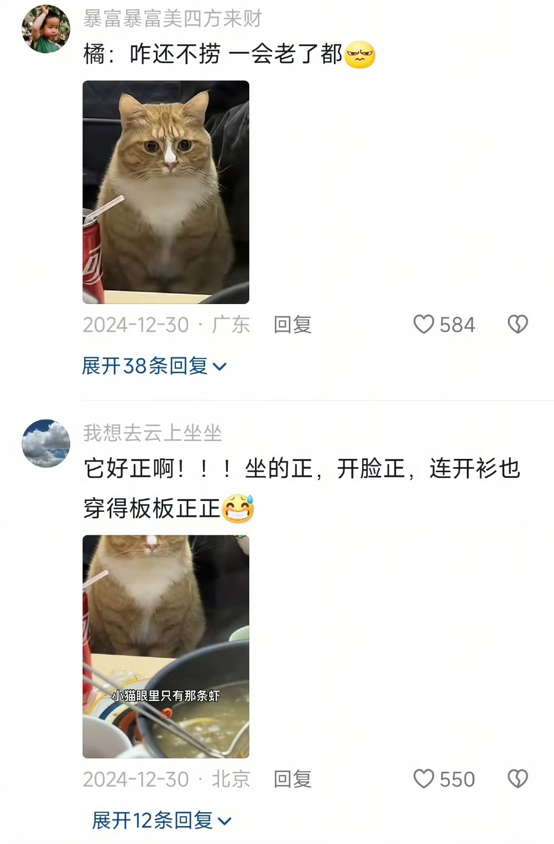 小猫站得板板正正!!目光锁定锅里的虾!