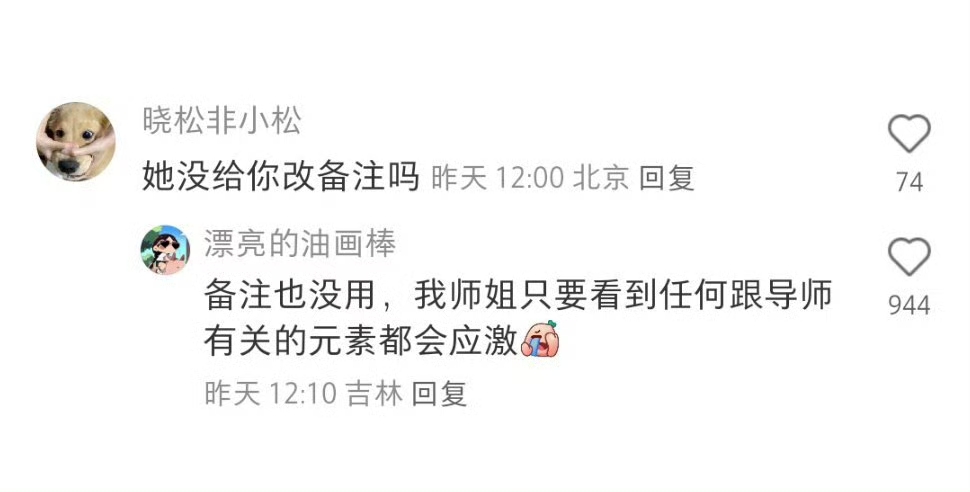 备注也没用,我师姐只要看到任何跟导师有关的元素都会应激