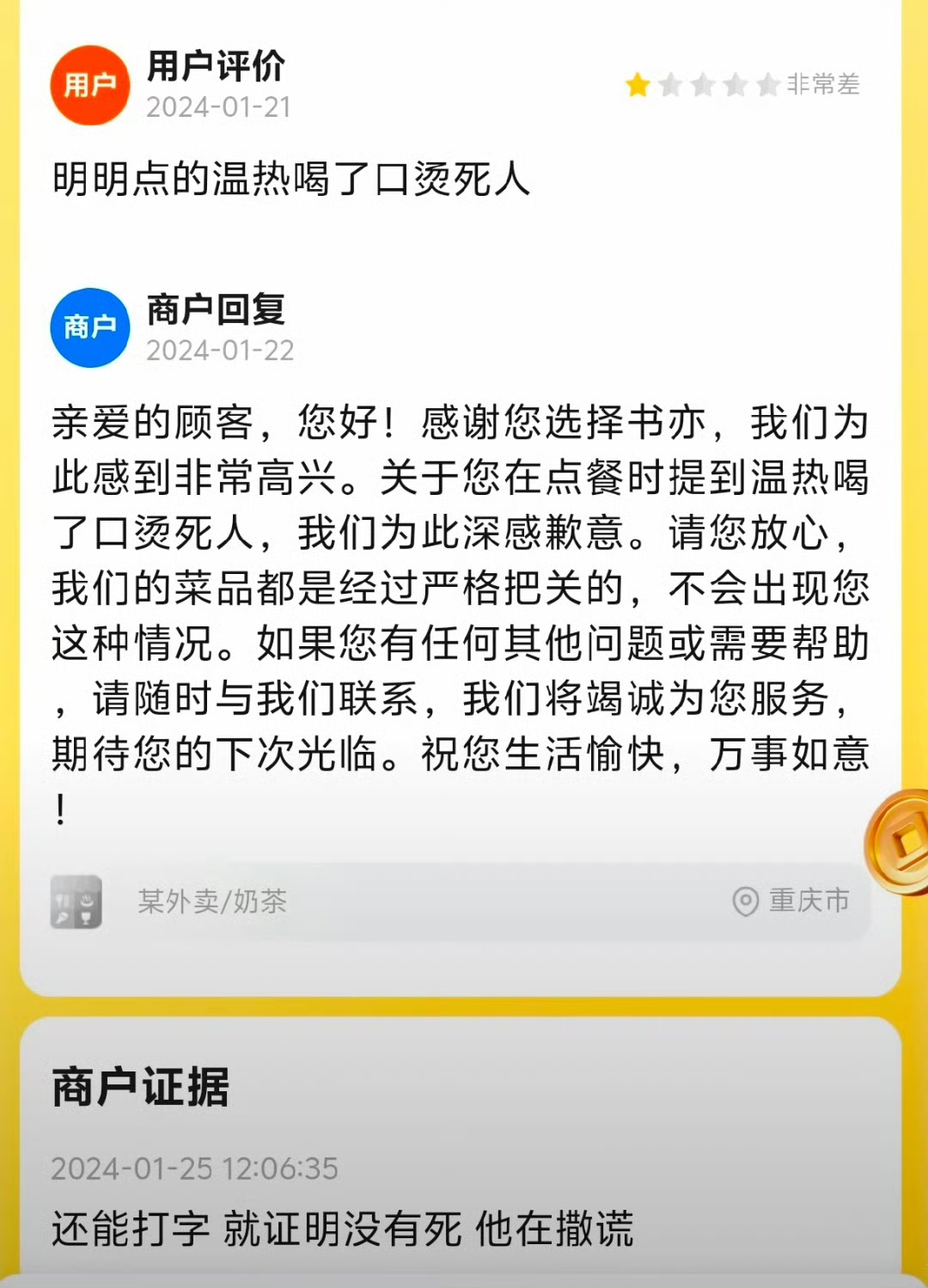 商家拿出了非常无力的证据