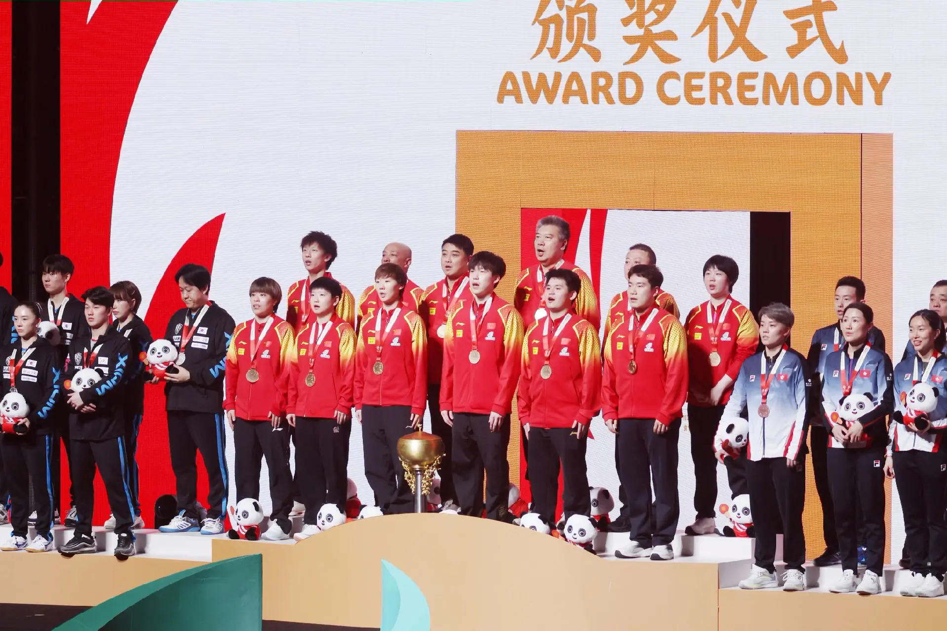 一年后重新回到这里,中国乒乓球队再次拿到混团世界杯冠军,为团队感到骄傲...