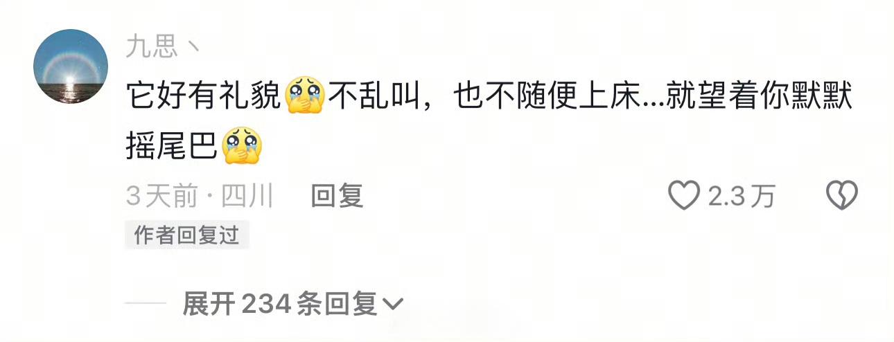 它好有礼貌,不乱叫,也不随便上床,就望着你默默摇尾巴