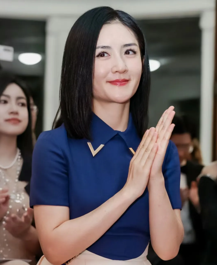 谢娜本人皮肤很好很年轻,就是下巴太尖了有点儿不自然。 年过四十的她越来越温柔稳重了,一身宝蓝色的衣服内敛端庄,眼神清亮笑容恬淡状态特别好。
