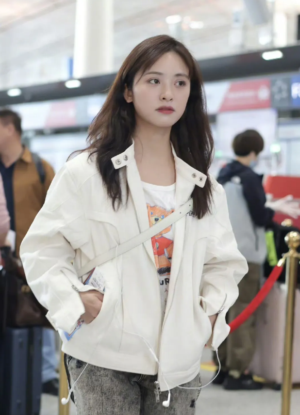 沈月机场生图,她单看脸很好看,但全身照就比较幻灭个子太矮了,头大腿短身材比例很虐。