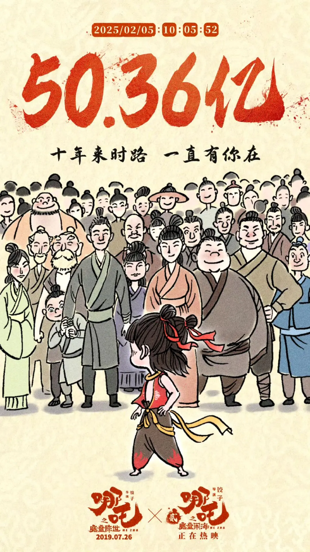 恭喜哪吒之魔童闹海登顶中国电影票房冠军