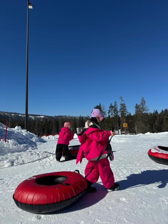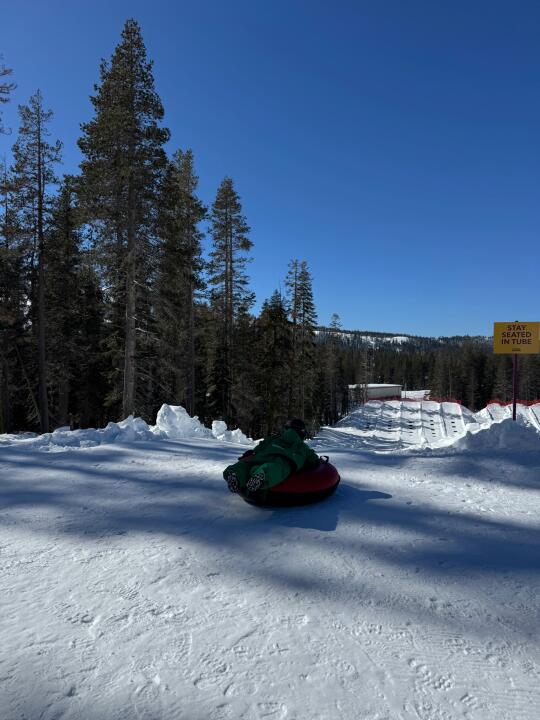 Sugar Rush Tubing 350 Sugar Bowl Rd Truckee, CA 96161 在sugar bowl雪场的外面,50刀俩小时,超长的滑道,老刺激了哈哈哈哈,然后坐魔毯上去,人也不是很多,娃们都玩high了