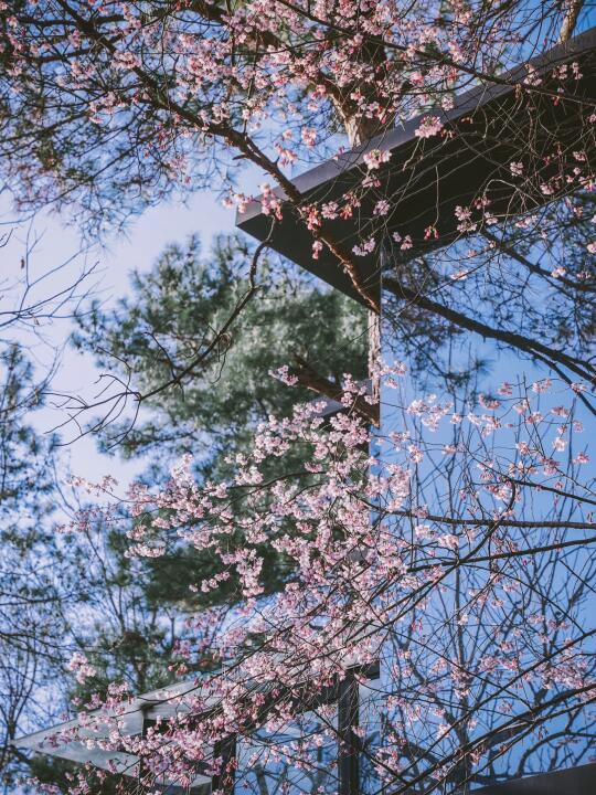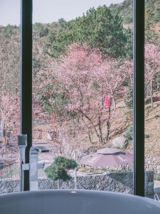 民宿内也有很多樱花树,甚至住在客房就能足不出户观赏樱花♨️泡私汤