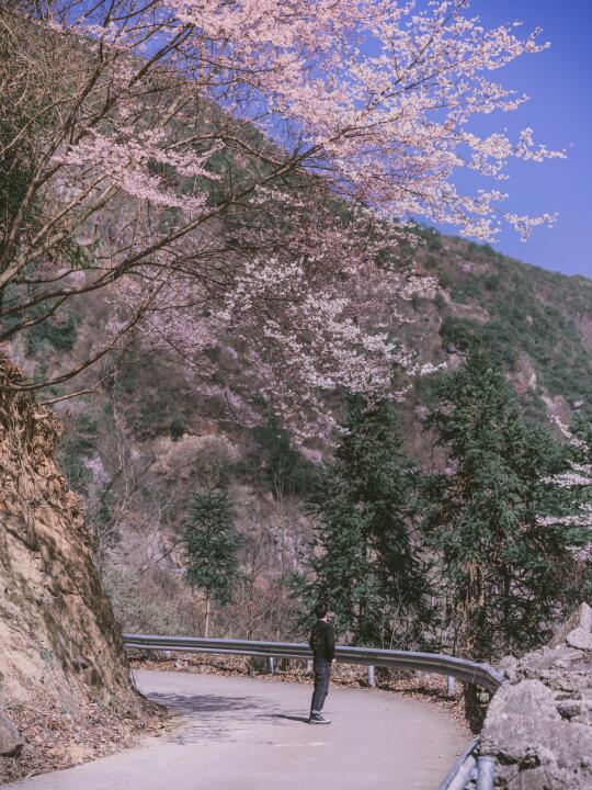 ✨也可以停在山路边,站在樱花树下,等待一场浪漫的樱吹雪