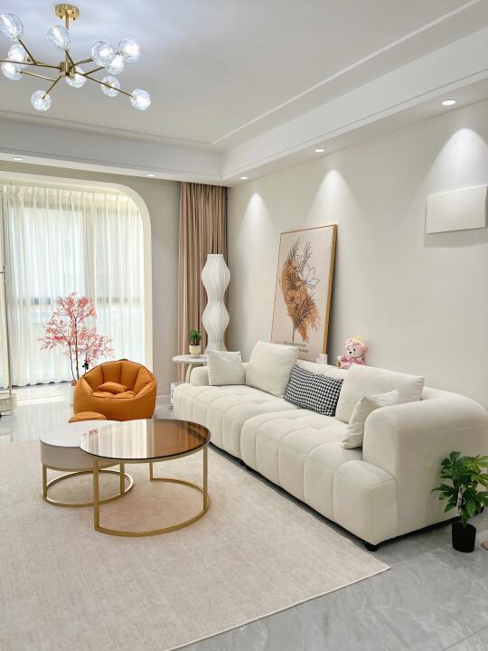 灯光能营造出不同的氛围。主灯可以选择简约的吊灯或落地灯,辅以筒灯、壁灯或台灯,打造层次丰富的光影效果。