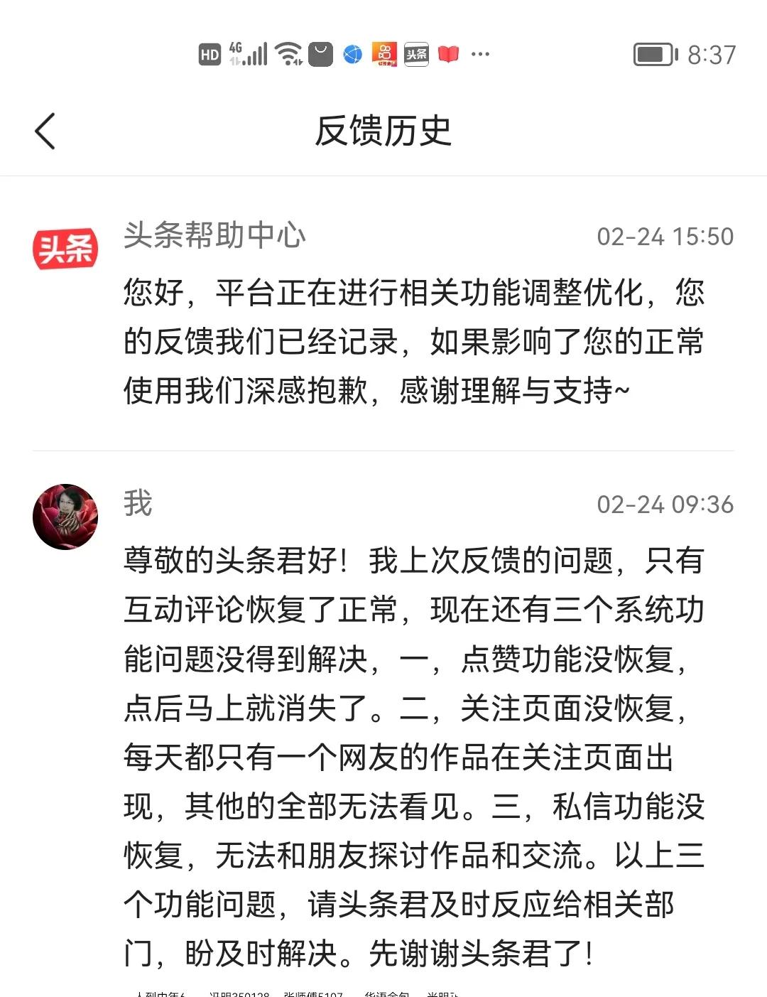 好友们,晚上好! 相遇在网络,开心在空间。由于系统问题,我的空间到现在都还没恢复正常运行,在这漫长的等待中没法和朋友们互动,我是一点也不开心,心里那个着急呀!今天忍不住又向头条平反馈了具体遇到的问题,得到回复的还是系统相关功能在调整优化中,我真是晕死了,特无语了,不知猴年马月才能恢复正常,实在抱歉,还得请好友们继续谅解。在此,隔屏祝大家新周愉快,平安幸福!
