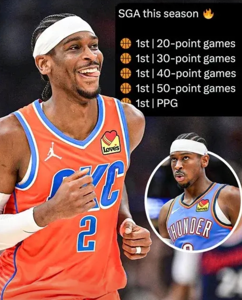 NBA最强得分手,亚历山大本赛季第四次爆砍50+联盟第一人!