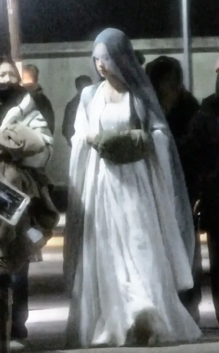 张天爱跟素人合影,胯真的好宽,大宅院似的