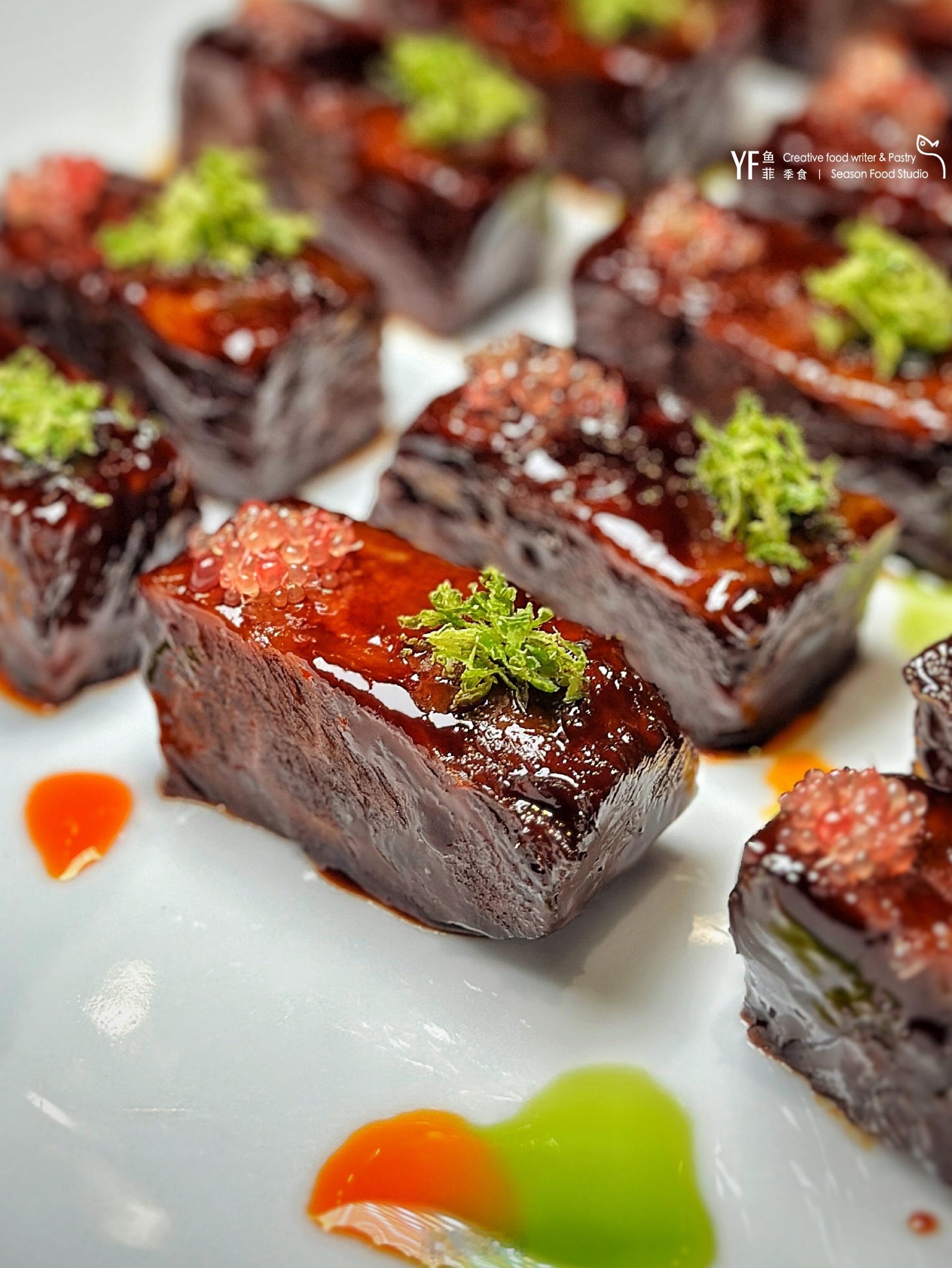 🐷发酵汁松板肉,肉纹里渗出的酸甜,在春雨夜独自“发酵”着肉香。藜麦沙拉茨菰最是清奇,脆生生的茨菰块,酸甜醇厚,藜麦的硬度增加了口感。