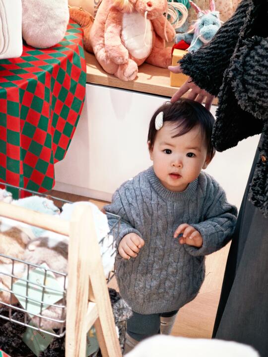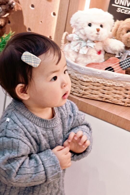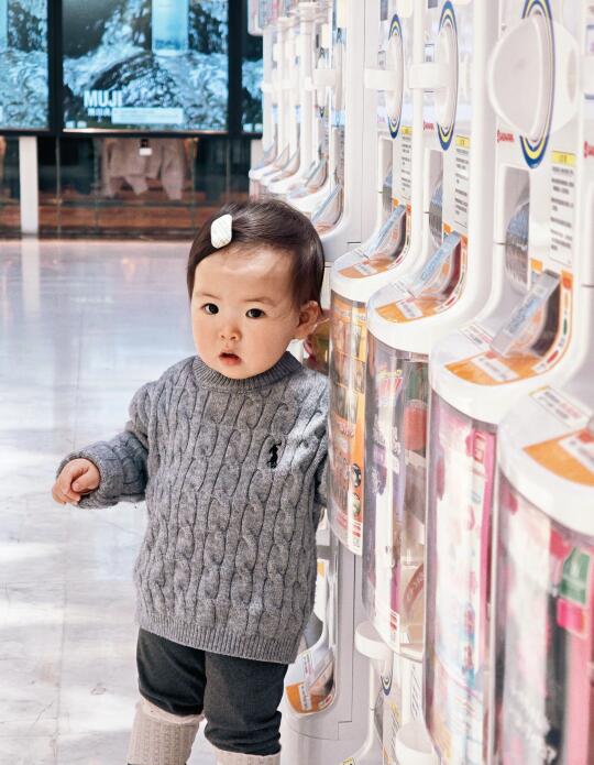 不得不说天体暖和以后漂亮衣服都变多了 因为妈妈真的是很爱黑白灰 所以宝宝鲜艳的衣服也不多 但是灰色的毛衣真的太显白了 刚会走路的年纪也不怕弄脏