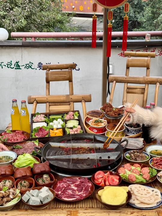 朝天门这家坝坝火锅,是真的有点东西! 露营风的坝坝头,坐起吃火锅是真的hin舒服 绿植环绕,环境漂亮,晚上还能看夜景,安逸~