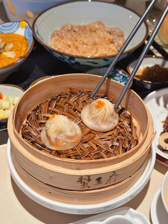 精选黑猪肉和现拆蟹粉,小笼包的皮也是晶莹剔透着汤汁,轻轻咬下去一口爆汁,回味无穷。