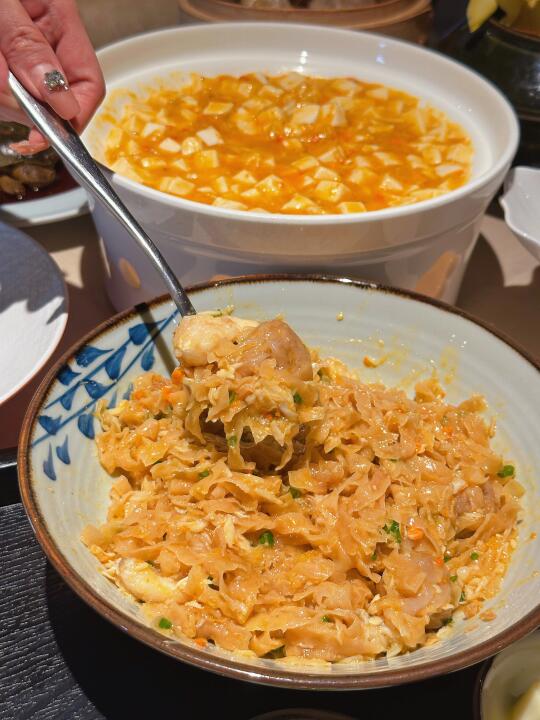 据说是他家每桌必点的经典菜之一,细嫩的豆腐和浓郁鲜美的蟹粉融为一体,拌面拌饭都是一绝~