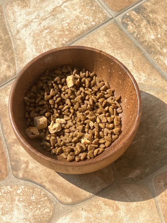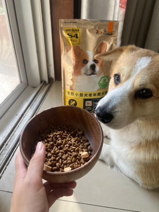 狗粮颗粒很小,特别适合牙口不太好的老狗,像黑米嚼起来很轻松,再也不用担心它吃东西费劲啦。