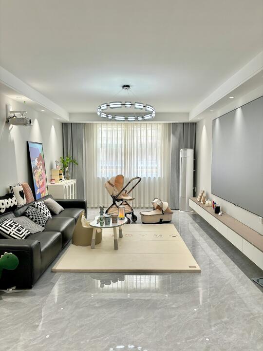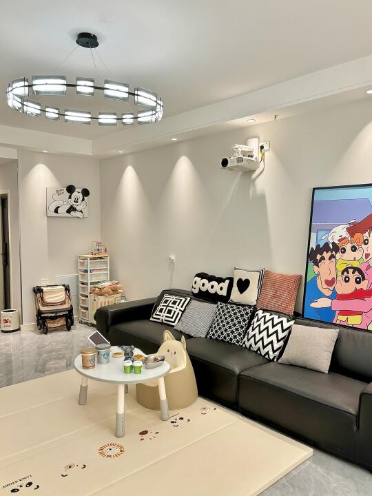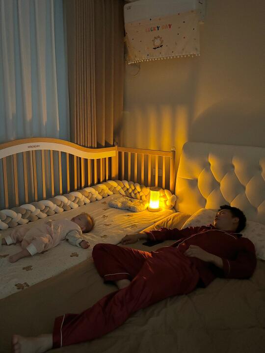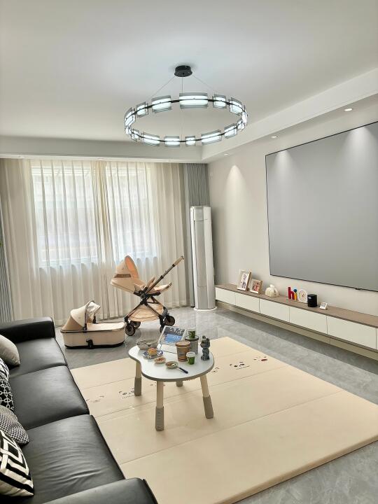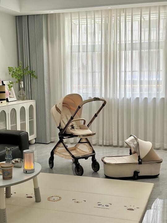 再流行的风格在有娃以后都会变成养娃风格… 茶几地毯通通撤走,取而代之的是娃的花生桌小沙发,爬爬垫,方便娃活动的大空间,方便自己带娃的生活动线,客厅一直放的有推车,方便哄睡,还可以随时推着出门,一键折叠后小小的放墙角也不占空间。 休闲一刻,窝在充满人类幼崽气息的客厅,刷着哑巴📲在生娃后我能明显感觉自己视力下降了,就配了个母婴灯,光源柔和比较不伤眼睛😭 它还可以自动调节光线,帮宝宝感知外头时间,建立正常生物钟,方便以后能自主入睡。 有娃后,你们家哪些适娃性改造?