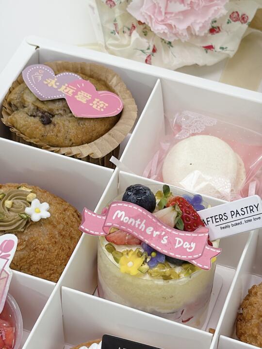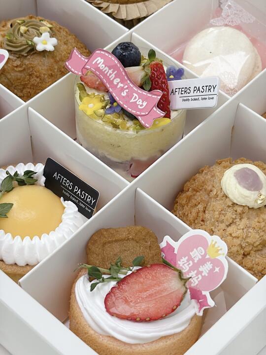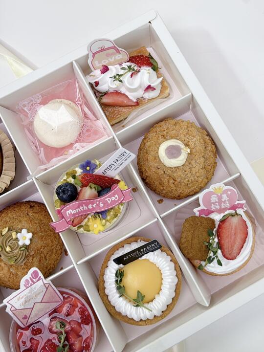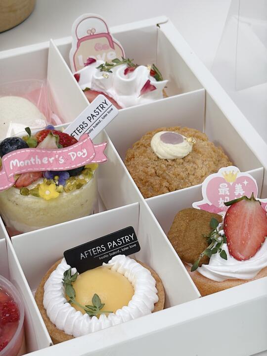 提早过了个母亲节 每年担心吃不完这粒蛋糕 那就来个九宫格甜点盒一次满足[萌萌哒R] 还有一束fafa ~ 📖afters pastry家的哈