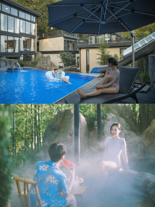“当泳池倒映着苍翠松林,绣球花海从脚边漫向云海”这才是520犯规的约会打开方式💖
