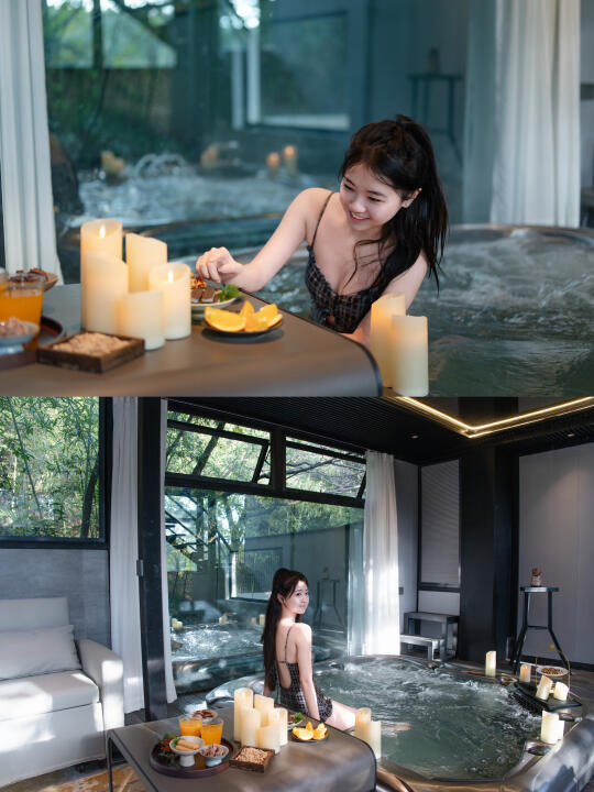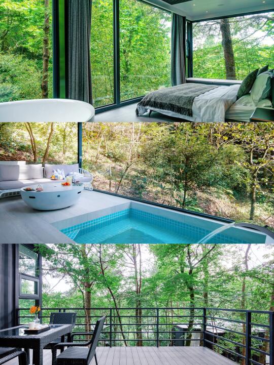 ➰全景落地窗+森林浴缸🛀泡着澡看山林雾气升腾