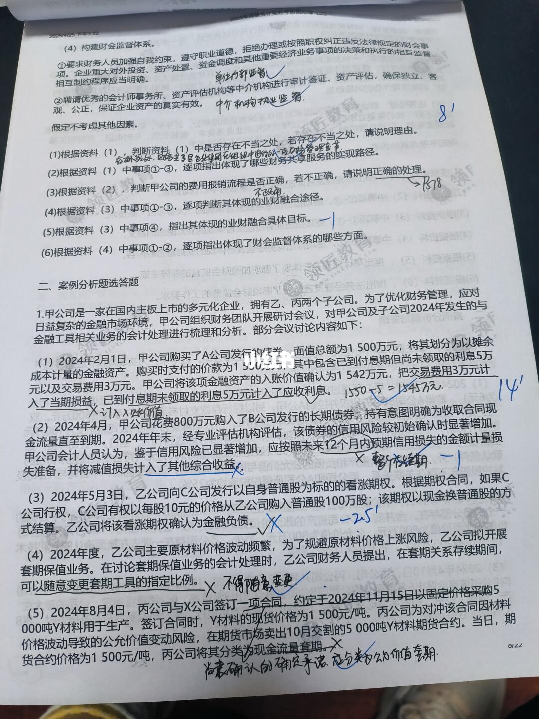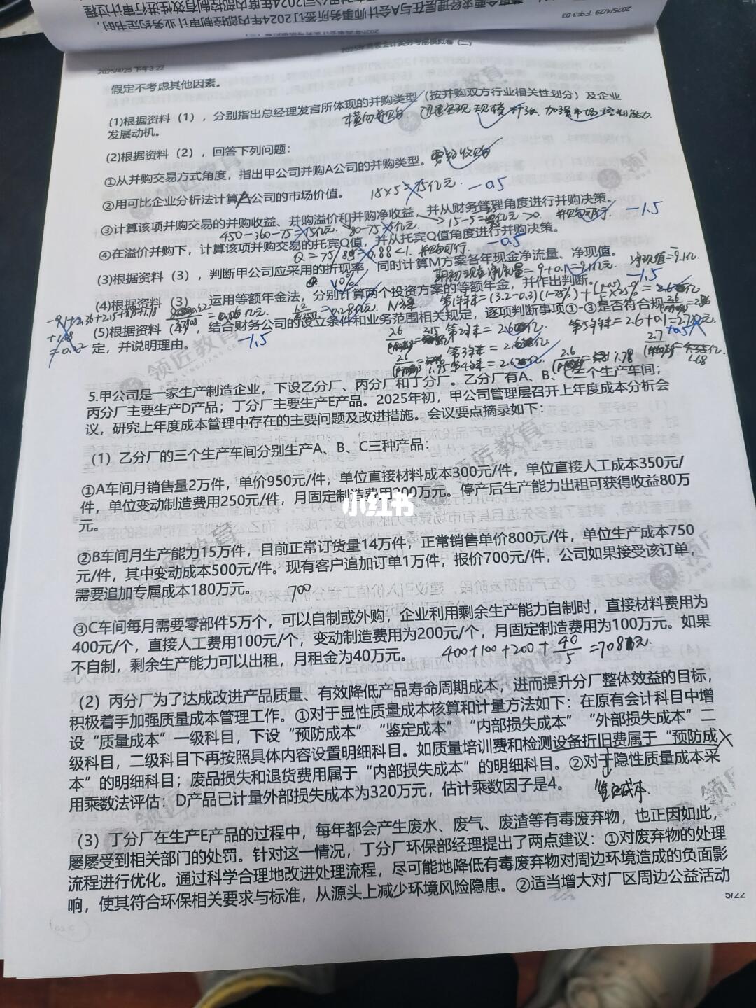 确实应该比第一套难 从做题的时间就看出来了 这套题做了3个小时 注意写理由的题要从题目里找然后写回答 并购那道题居然扣了好几分