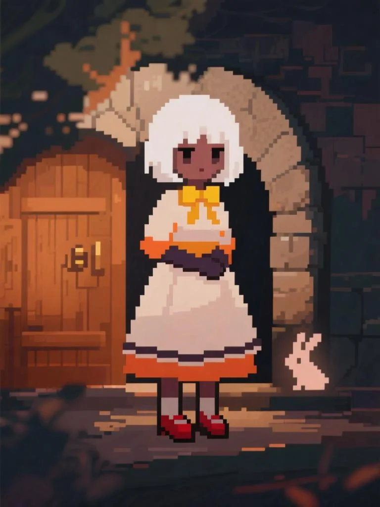 首先,这是我自己画的,其次,这是我自己亲手画的! 它们的归属权在我手里,别说我把它们喂给ai,就算我把它们打印出来垫桌角都成,但是别人用就不成,哈哈 然后我想分享的一个比较有意思的,就是可以把光仔喂进去,会获得一些很可爱的小像素人哦,但是这个AI目前还是比较制杖的,你需要不断地生成才能得到一个比较满意的效果