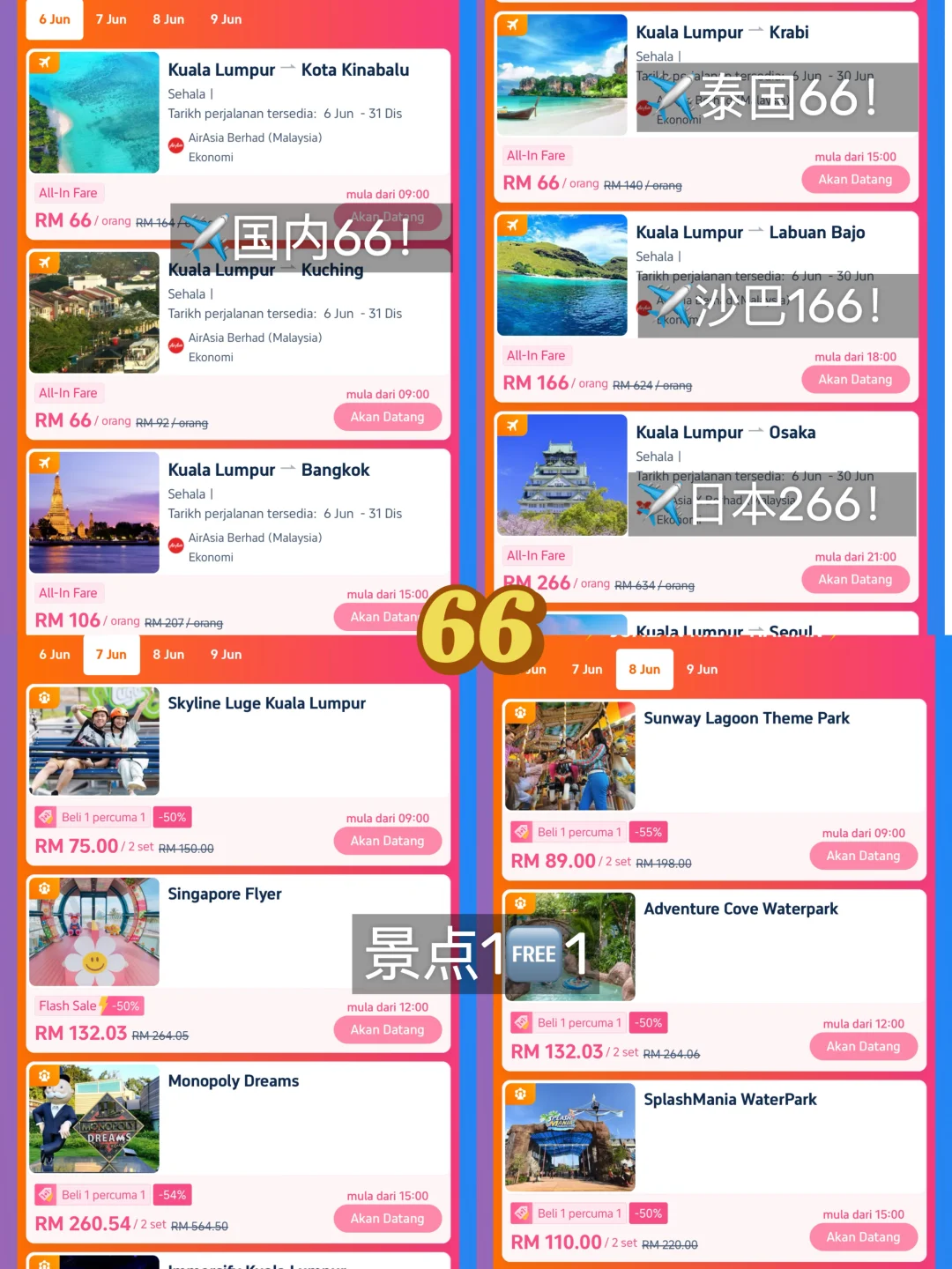 Planet 双6来啦[萌萌哒R] 年中就等这一波了🎉到9号‼️ 每次就是很期待这种节日~ 6.6⬇️ 👉4天每天都有限⏳✂️ 👉KL ✈️国内 飞沙巴💰66 👉✈️大阪 💰266 👉其余酒店、机票 ✂️💰100 👉各大景点 1 🆓1 CN⬇️ 👉✈️ ✂️2趴 👉 🏨 ✂️5趴 👉🚄 ✂️5趴 👉景点 ✂️6趴 👉接送机 ✂️12趴 🚩 Trip.com