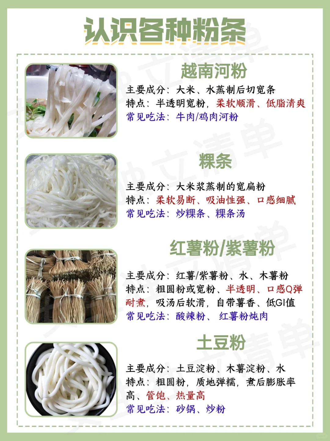 ✨淀粉类:红薯粉(酸辣粉)、土豆粉、木薯粉(粿条)