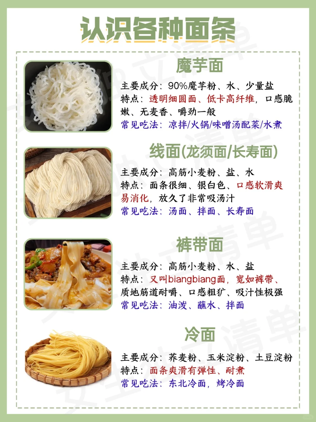 ✨北方:炸酱面、刀削面 ✨南方:热干面、云吞面