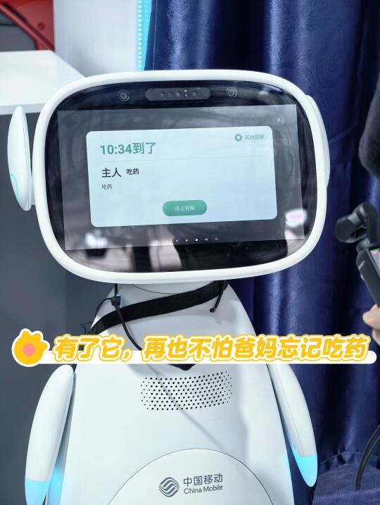 轮式机器人按时提醒老人吃药、运动,还能提供情感陪伴