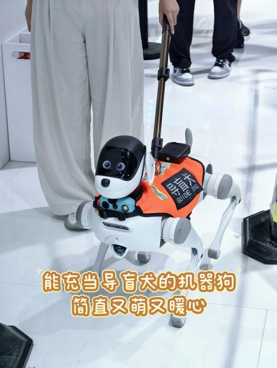 萌系机器狗🐕撒娇卖萌、陪娃玩耍都不在话下!甚至!它还能充当导盲犬的功能,引导视障人士出行,为他们精准避障!