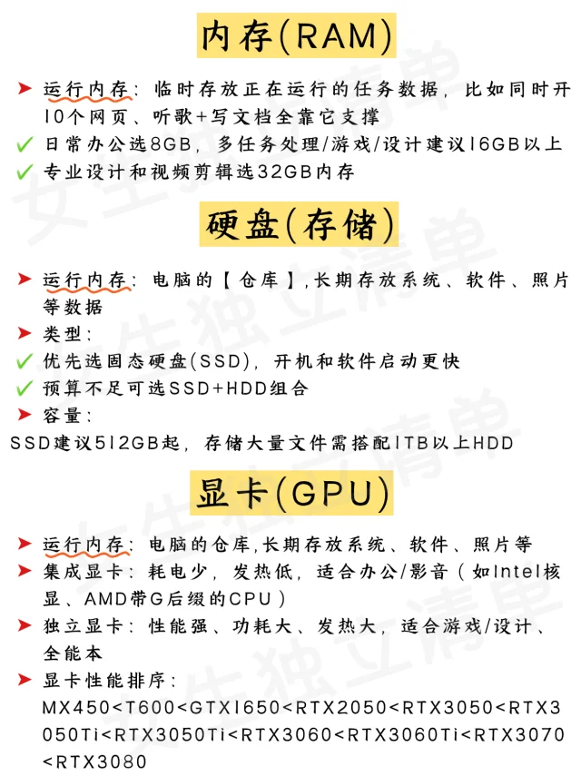⚙选配置:按需求匹配CPU、显卡、内存组合