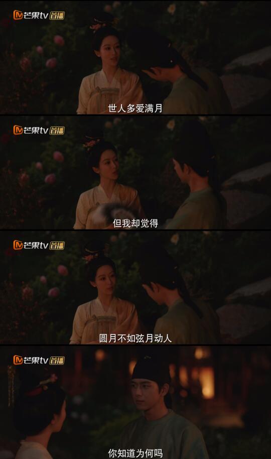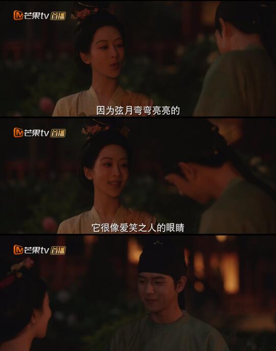 “思君如满月,日日减清辉。”思念一个人的时候总是看月亮,思念至深,容颜也变得憔悴。世人大多数爱满月,是因为满月意味着圆满,但人间小满胜万全,所以弦月也不错,更何况有人爱笑,笑起来眼睛弯弯,让看月亮这件事也变得不再孤独。她在想他。他亦是。