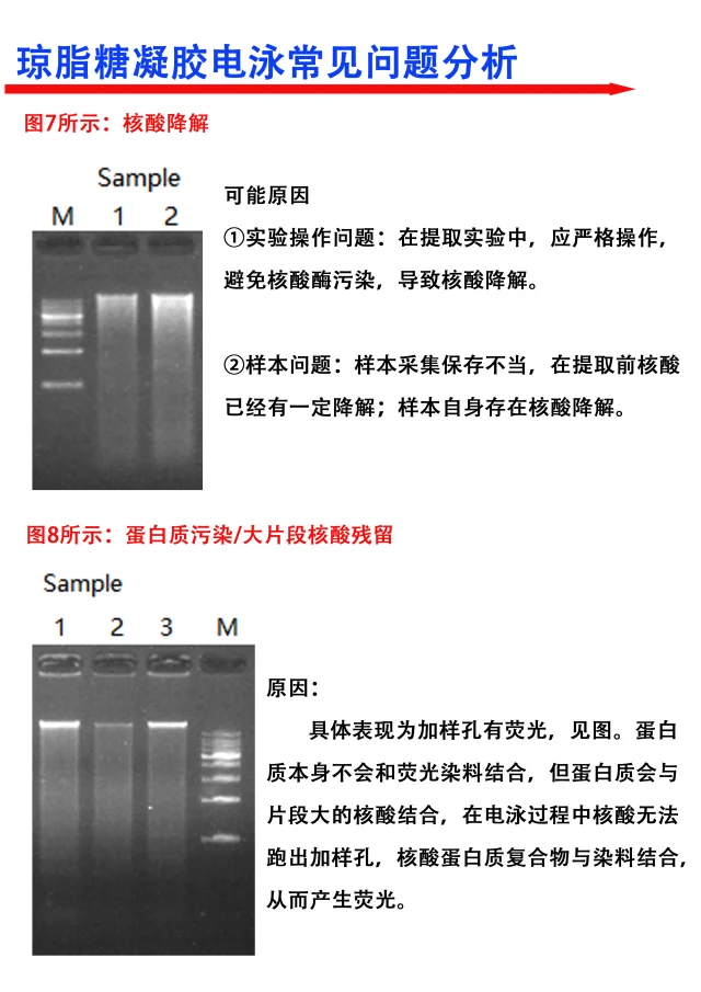 [飞吻R]大家晚上好!我是科研废物,跑了那么久的琼脂糖凝胶电泳,结果你真的会分析了吗?[举手R] 本期给大家整理了一些PCR凝胶电泳常见的问题及其分析 1⃣️什么条带都没有 2⃣️Marker跑不直,斜或拖尾 3⃣️PCR产物没有条带 4⃣️条带弱 5⃣️非特异性条带 6⃣️整个条带弥散或拖尾 7⃣️核酸降解 8⃣️蛋白污染,核酸残留 9⃣️核酸污染 满满的干货与tips ,欢迎大家👍收藏,一起讨论交流呀