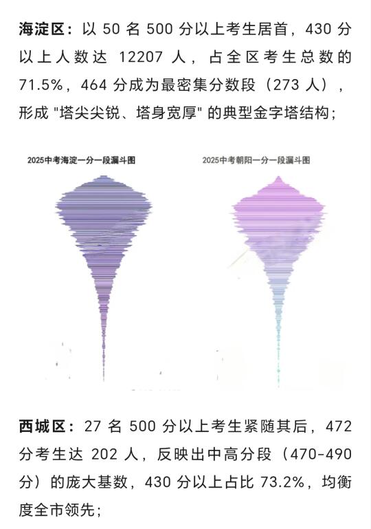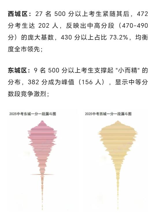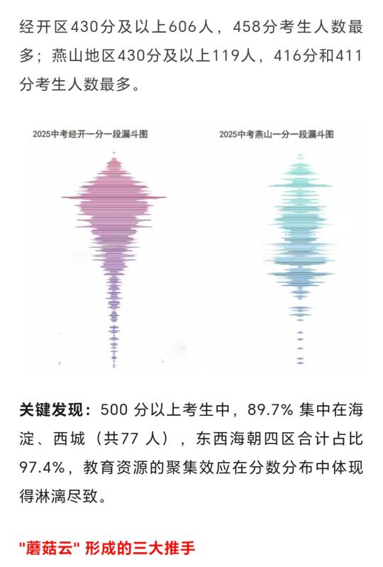 2025年北京新中考总分510分的格局下,各区一分一段表呈现出显著的 "头部聚集" 特征,117 名 500 分以上考生构成的 "蘑菇云" 形态,折射出教育资源的区域分化,一起来看你所在区的情况