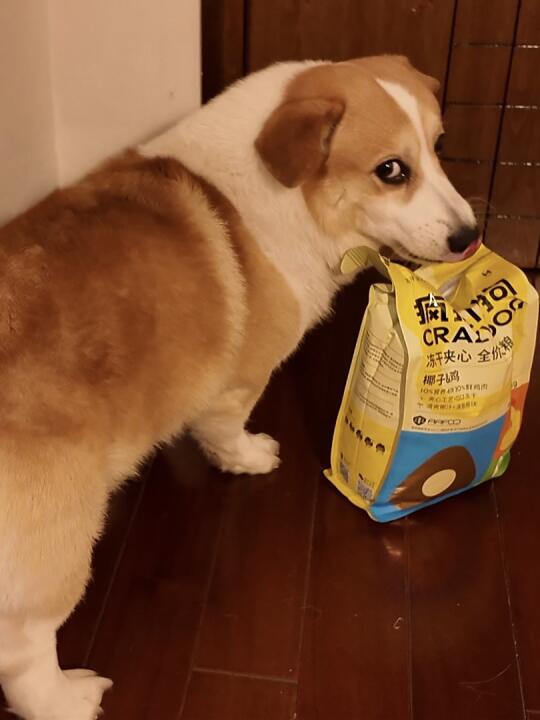 疯狂小狗家的狗粮真的从来没有让我失望过,冻干都超多,还是夹心的我家的吃着香,椰子鸡味道的适合天气热一点小狗吃,p3自己叼走了它的宝贝
