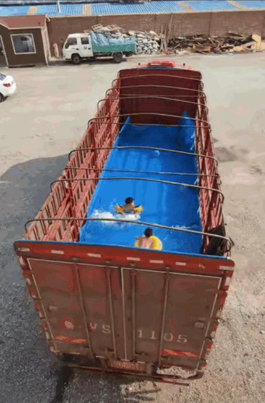 这辆“泳池卡车”迅速火遍全网,背后藏着两个不同版本却同样温暖的故事,临沂的一位父亲用防水布和胶带把东风重卡货厢改造成泳池,儿子在水里不肯出来,邻居们甚至提议搬来充气滑梯搞个“社区水上乐园”。