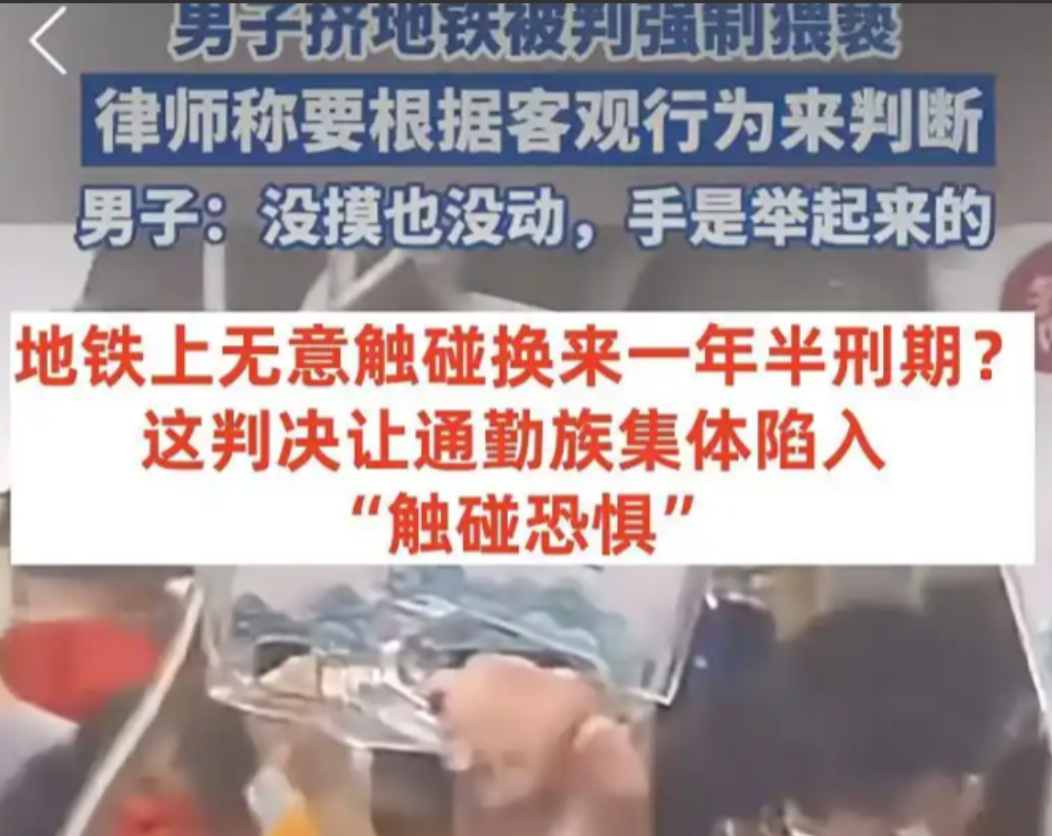 广州,男子称挤地铁时,身体隔着包碰触到女性身体,没有摸、没动,连手也是举起来的,结果对方不愿意了报警,自己被以强制猥亵罪判处有期徒刑1年个月。 最近广州地铁上的一个案子,让不少天天挤地铁上班的人都有点发怵,一个叫周瑜的男子,在早晚高峰的地铁里,说是隔着背包碰到了女性,结果被法院以强制猥亵罪判了一年六个月。 这事儿一出来,网上立马炸开了锅,大伙儿都在讨论,挤地铁时不小心碰一下,怎么就成犯罪了? 其实这案子的争议点,核心就是“无意触碰”和“故意猥亵”到底怎么分,周瑜自己一直喊冤,说当时手是举着的,根本没动过,也没摸没碰。 但法院觉得他是“趁人多拥挤,用生殖器顶蹭被害人臀部”,可问题是,地铁监控没拍到他有啥“咸猪手”动作,身上也没查出任何生物痕迹,连裤子都干净得很。 就凭着被害人说自己被冒犯了,这刑就判下来了? 很多人觉得这证据有点太单薄了,咱们都知道,“孤证不立”是打官司的基本规矩,尤其是刑事案件,更得证据确凿才行。 现在就凭一方说被碰了,没监控、没人证、没物证,就把人送进监狱,换谁心里都不踏实。 而且法律里本来有梯度的,轻微的猥亵可以用《治安管理处罚法》拘留几天,严重的才用刑法判刑,这案子直接跳过轻的用重的,不少人都觉得有点过头了。 这事儿吵到最后,其实是两种权益在碰撞,女性当然希望在公共场合更安全,对性骚扰零容忍,这没毛病。 但普通男性也怕啊,怕自己在人挤人的地铁里不小心碰一下,就被安上“猥亵”的帽子。 就像有人说的,要是连隔着包的偶然接触都算犯罪,那早晚高峰的地铁车厢里,岂不是人人都带着“犯罪预备役”的标签?法律这杆秤得端平,不能为了保护一方,就冤枉另一方。 再说说当事人周瑜这边的情况,他一审的时候,法律援助律师说他妥妥无罪,结果法院没听。 二审时律师建议他认罪求轻判,他不愿意,最后连律师都没了,就这么着,他坐了一年半的牢,这一年半里天天喊冤,之前在微博上说没人理,最近才有了热度。 更让人在意的是,警方抓他的时候,居然没及时检查他的裤子,后来法院说,就算裤子上没痕迹,也不能证明他没做过,可反过来想,没痕迹难道不也说明可能真没做过吗? 现在大伙儿最关心的,还是以后挤地铁该怎么办,有人说地铁该多装摄像头,万一有纠纷能查清楚。 也有人说法律得把“情节严重”说明白,比如碰了几次、用啥动作碰的、造成啥后果了,这样大家心里才有数。 法官判案的时候,也得多想想地铁有多挤这个现实情况,不能光听一方怎么说。 说到底,这案子给所有人提了个醒,公共场合的触碰边界必须明确。法律是用来保护大家的,不是让人天天提心吊胆的。 真正的坏人当然要严惩,但也不能让无辜的人因为一次无意的碰撞就毁了生活。 希望这事儿能推动相关的规定更完善,让挤地铁上班的人能安心点,不用再担心“碰一下就犯法”了,毕竟,谁也不想在通勤路上,还得时刻提防着变成“犯罪嫌疑人”。