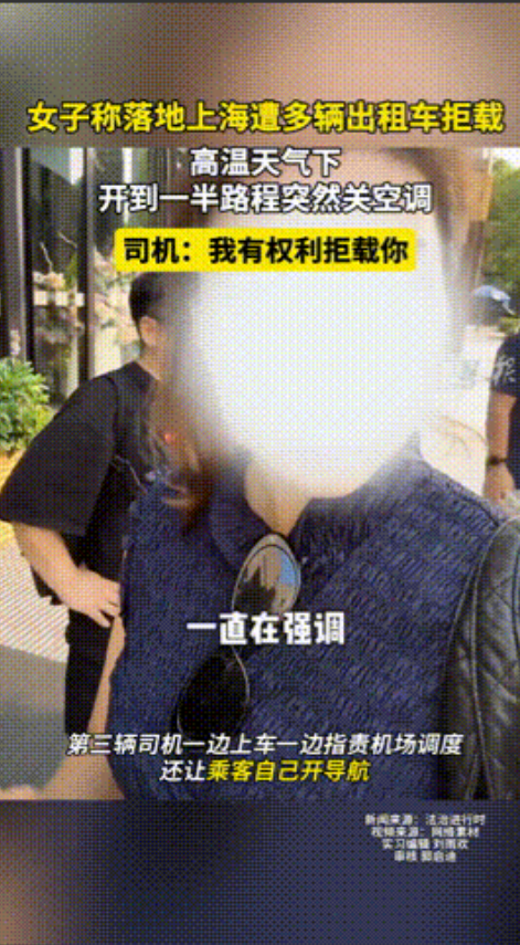 好几个出租车司机看到他们的行李后,问都没问去哪儿,就直接踩油门走了,连个解释都没有,而夫妻俩站在路边,看着车尾灯都愣了。 好不容易等来了车子,结果司机一边嘟囔着“这活儿真晦气”,一边不情不愿地让他们上车,可刚坐好,司机就开始抱怨机场调度,表示尽给些短途单子,随后还让乘客自己开导航,总之全程都没好气。 车开到一半时,正好赶上外面三十多度的高温,没成想司机突然就把空调关了,车厢里瞬间像个蒸笼,女乘客忍不住问咋回事,可司机脖子一梗地表示:“接你这短途,油钱都赚不回来,我凭啥给你开空调?”这话听得人火冒三丈,合着短途乘客就不配被好好对待? 更气人的是,司机嘴里一直骂骂咧咧,说自己有权拒载,要不是被机场工作人员逼着,根本不会拉这单,这让夫妻俩火冒三丈,没想到自己是花钱买罪受,等下车后就在媒体上曝光了此事。 不得不说,这司机的做法确实让人生气,不管钱多钱少,对方都是自己的顾客,态度必须得到位,更别说是在上海这样的大城市,而司机的所作所为,无疑是给上海抹黑。