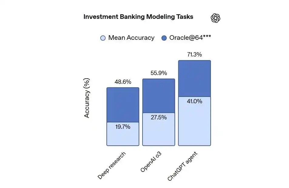 7月18日凌晨,OpenAI通过技术直播发布重磅产品ChatGPT Agent。 这款新产品具备自主思考与行动能力,可主动从技能库中选取Operator、Deep Research、ChatGPT等合适工具,完成各类超复杂任务。 直播视频 简单来说,它是融合了Operator智能体网页交互能力、“深入研究”(Deep Research)功能的互联网信息搜集能力,以及ChatGPT对话能力的统一智能体——这意味着ChatGPT不再局限于问答机器人的定位,还能借助“内置计算机”代表用户完成多步骤复杂任务。 举例来说,当用户要求分析三个竞争对手并制作幻灯片演示文稿时,ChatGPT Agent会智能浏览网站、筛选日期与结果、运行代码,甚至自动生成经过润色的幻灯片或电子表格。 为开发这一工具,OpenAI已将背后的Operator团队与Deep Research团队合并为统一团队。据外媒TheVerge报道,该新团队由产品和研究部门的20~35人组成。 OpenAI方面表示,ChatGPT Agent的底层模型在多项基准测试中展现出领先性能。其中,在涵盖超百个学科、由数千道题目构成的高难度测试“Humanity'sLastExam”(pass@1)中,其得分率达41.6%,约为OpenAI o3和o4-mini得分的两倍。