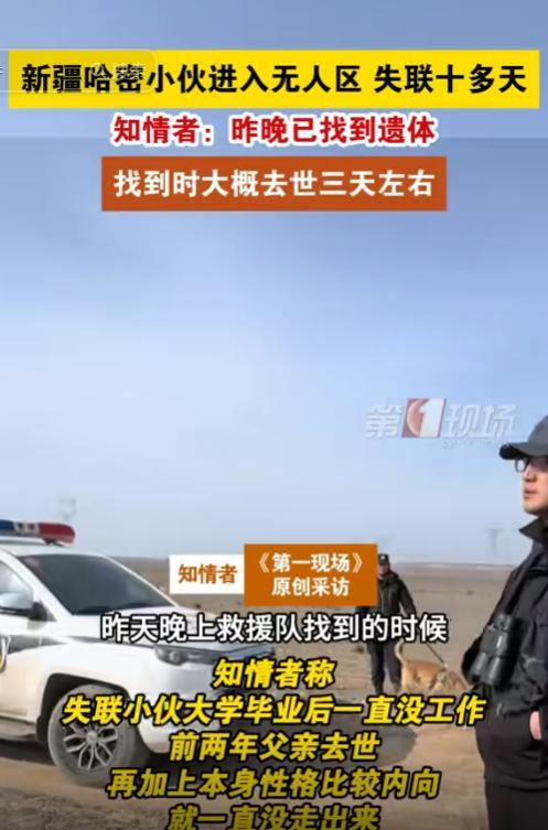 2024年1月份,新疆有个26岁的小伙子叫阿力木,他开车进了没人的地方,然后就消失了。过了十天,警察在那片没人的地方入口找到了他的车,车胎都爆了,车钥匙还插在上面,吃的东西和水都还在车里,可人就是不见了。奇怪的是,他留下的脚印还往更没人的地方去了。