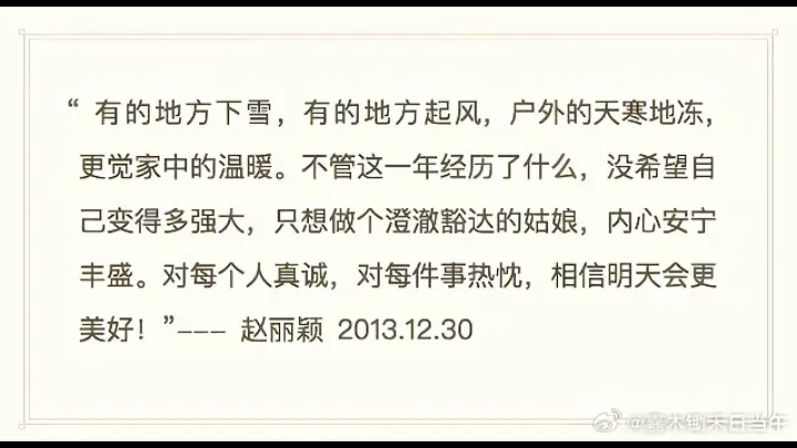 赵丽颖 赵丽颖正能量 何须畏惧勇往直前的迷茫何须在意流言惑众的失落无力何须等待破蛹而出的机遇或 无声回答的沉默愿为爱翻山越岭我们都是路虽远但情长