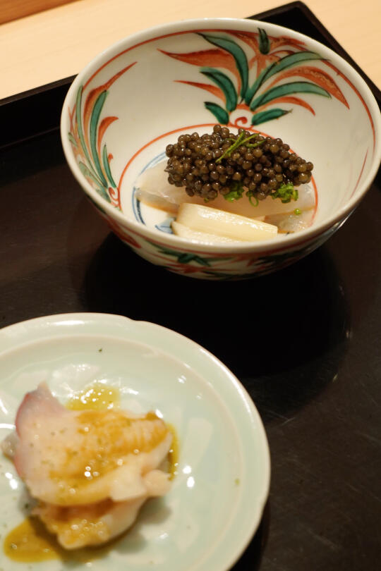 剥皮鱼北寄贝造里超鲜嫩,鱼肉的细腻与北寄贝的清甜在冰盘上相遇