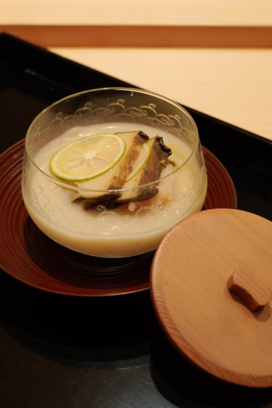 贝集酢香海带冷拌是中场的小憩,酢的酸与海带的韧交织,解了前面的厚重,让人重新提起食欲