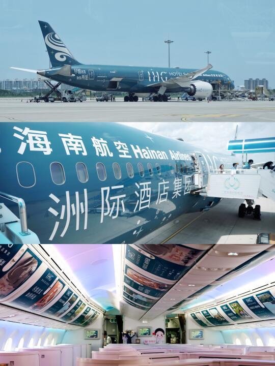 走过廊桥向外望去,一架深蓝色涂装的 “IHG洲游号” 彩绘主题客机静静停在停机坪上,在阳光下散发着独特的魅力。我即将搭乘这班海南航空的这趟彩绘班机,前往三亚过一个休闲假期。